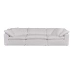The Clay modular sofa is upholstered with our Performance Technology Fabric, which is moisture-repellent, stain-resistant, and offers barrier protection. Its cushions are filled generously with feather and fiber blend, and channeled and double-wrapped to maximize durability. The top eight inches of cushioning are filled with foam, making it ultra comfortable while being able to withstand the demands of a bustling household.