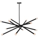 Artful arrangement and an unconventional silhouette give this modern ceiling pendant light major glamour. Six Matte black metal canes are suspended from a single stem in a crisscrossed pattern that’s anything but ordinary. A single bulb at the end of each black metal baton features a soft globe of light partially obscured by a sparkling silver shade. The debonair design of this decorative light fixture adds instant character to classic and contemporary spaces.