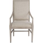 The Coalesce Upholstered Arm Chair stands as a statement piece with its plush seating and graceful arms, ideal for anchoring the ends of a dining table or as a stylish accent in any room, effortlessly enhancing the surrounding decor with its well-crafted silhouette.