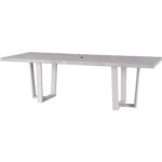 A large cast concrete top is accentuated by a sleek metal base in the South Beach Dining Table, a breezy statement piece with a modern silhouette.