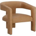 The Cobourg Lounge Chair displays the beauty of modern curves and sculptural design. Fully upholstered in ludlow sesame leather, this lounge chair features a wide seat and rounded seatback that will envelop you in luxurious comfort.