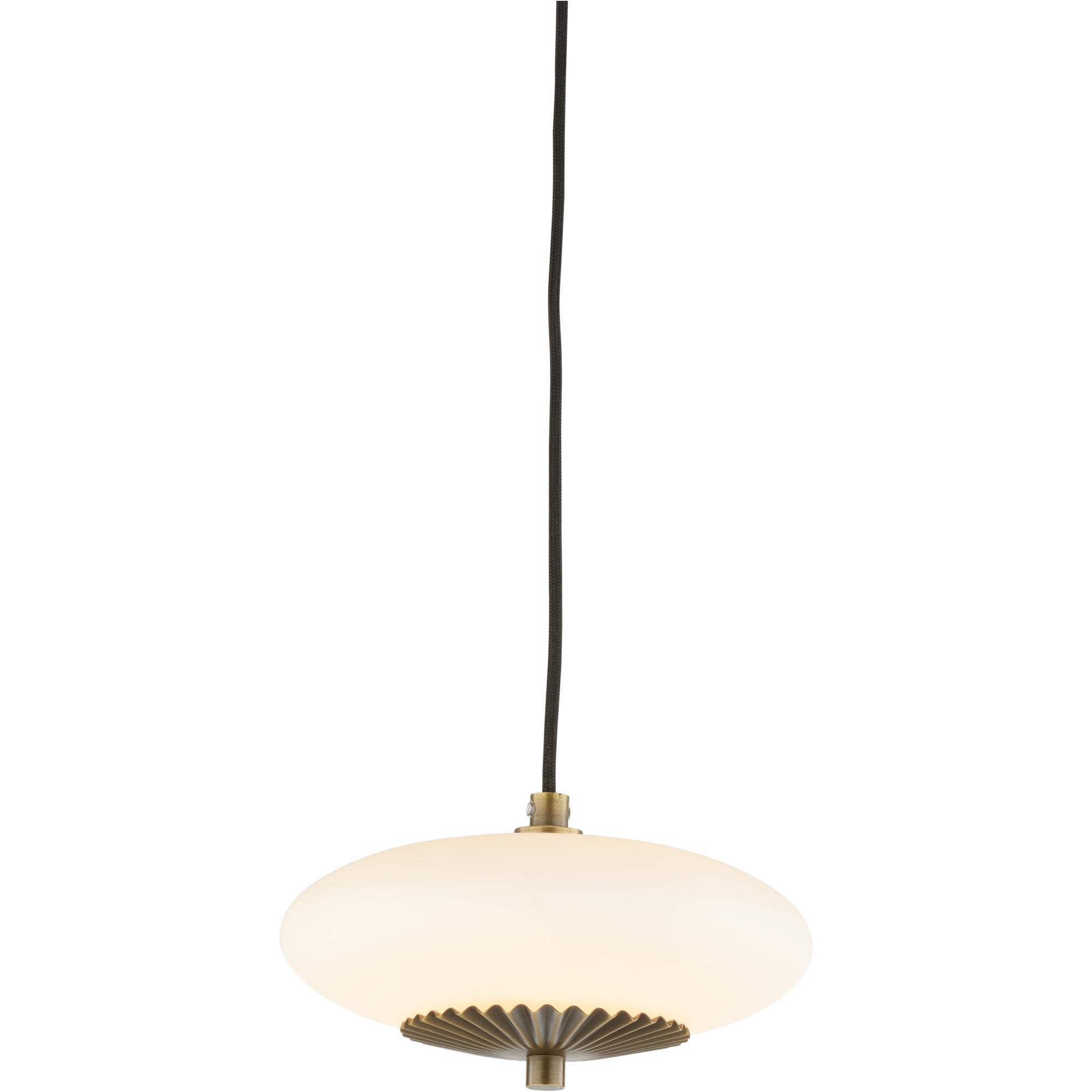 A thoughtful mix of feminine elegance partnered with a modern sensibility; the Collier Pendant is a statement-making fixture. A pleated brass disc highlights the milk glass sphere suspended from an adjustable height cord to offer flexibility across a myriad of applications.