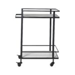 Get ready to roll this accent bar table into any room and start creating cocktails like a pro. Luxurious white Banswara marble meets dark and dramatic black cast aluminum to deliver a bar cart that’s ready for happy hour. Its wheeled construction allows users to move the cart freely from room to room. Mix cocktails and pour wine from the top tier and stash all your spirits and glasses down below. Anywhere its set up, there’s sure to be plenty of space for all your cocktail needs.