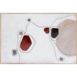 A modern art piece that features thin free flowing lines encompassing muted forms in a terracotta colour palette. Features a natural wood floater frame. Each artwork is hand-painted and will feature slight variations that make every piece unique.