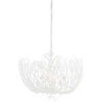 Cora Lee Chandelier features six lights that glow behind the willowy cast iron branches projecting shadows throughout your space. This versatile ceiling fixture can pass for coral in a coastal home or branches in a more rustic modern design. Comes with 6′ chain and 5.5″canopy.