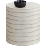 This round side table will enhance any environment. Crafted from concrete, this piece features hand sculpted ridges with a painted brass and gold finish. Suitable for indoor and covered outdoor spaces. Crafted from a natural concrete mix, each piece will look different, with variations of cream coloured hues that will enhance over time.