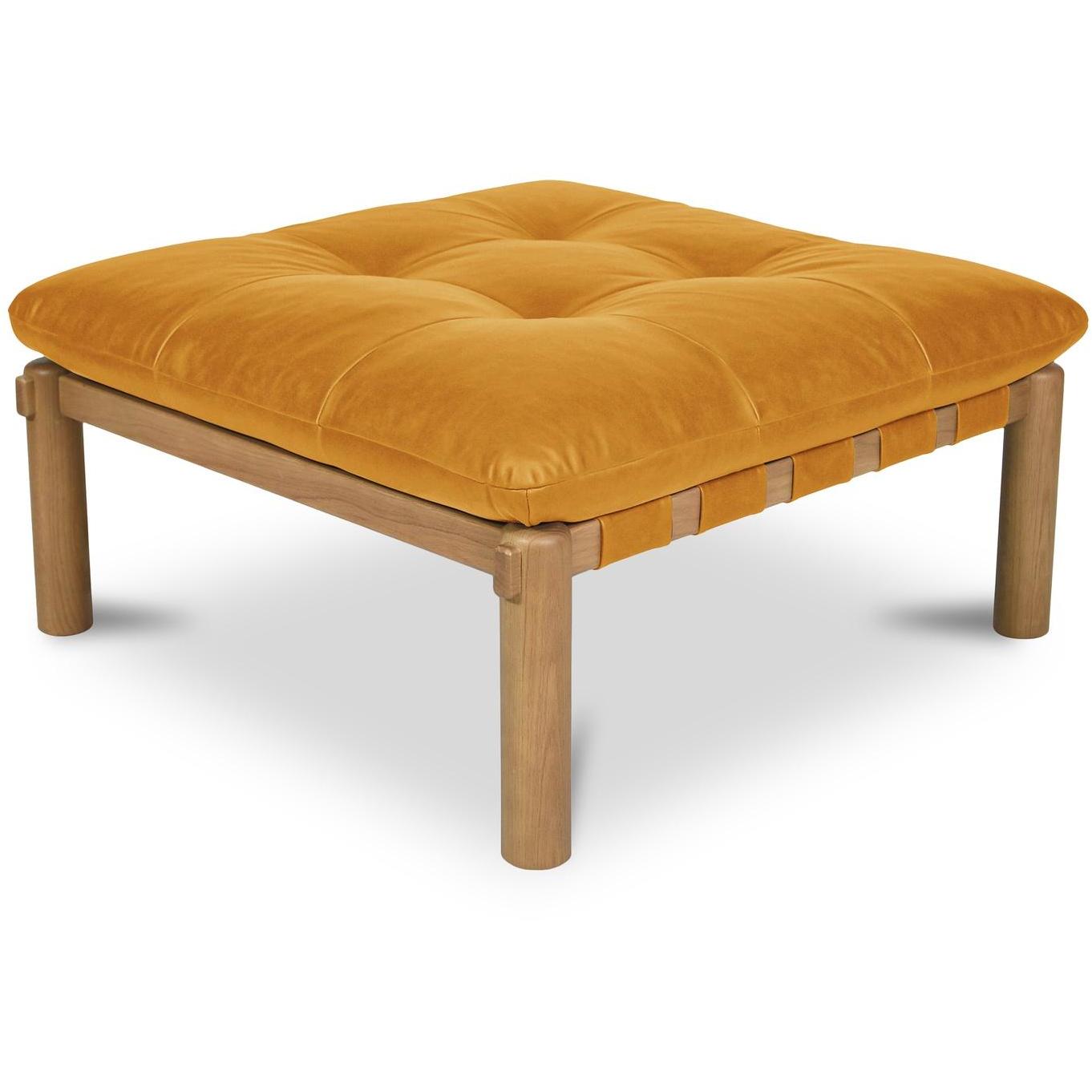 - Crafted details: With tufted top, rounded oak legs, and leather strap detailing creates a contemporary look rooted in timeless craftsmanship.