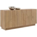 Taking cues from Scandinavian design, the Cove Sideboard is revitalized with beautiful wood patterning. Crafted from a black solid oak wood frame and completed with four cabinets for ample storage space. Anti-tipping kit included. As wood is an organic, porous material, these pieces will contain natural variation of texture and may also exhibit fine indentations and cracks. Wood pieces will also display a disparity of colour and grain, and visible knots and burls that add to the character of each piece.