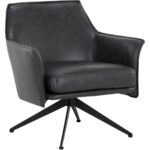 Embrace the comforting contours of the Crosby Swivel Lounge Chair. Perfect for any open living space, this lounge chair features sloped arms and a minimal silhouette upholstered in luxuriously smooth missouri cognac leather. Black powder-coated steel legs lend a stylish flair to the sleek design. Handle with Care: This design has been crafted with 100% leather. Leather is a natural material; as such, colour variations, markings, wrinkles, grooves and light scratches are acceptable and appreciated characteristics. No two pieces are alike. Visit our Product Care page for more information on how to ensure the lasting beauty of this piece.