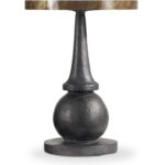 - Finish: Black finished base, acid washed brass metal top. Distressing includes antiquing.
