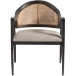 An appealing fusing of textures, the Dexter Accent Chair is built with an upholstered seat nestled within a dark frame and completed with an intricate woven back detail.