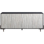 The Oslo Entertainment Console is crafted with a classic black and white composition yet infused with a modern twist, featuring gorgeous texturized doors atop sleek tapered legs.