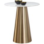 An absolutely stunning tapered bar table. Crafted with a brushed gunmetal base and a stunning white marble top to elevate any contemporary dining or lounge space. Suitable for residential and commercial environments. As marble is a natural material, unique veining, pitting, fissures, micro-cracks and colour variations are all characteristics that add to the uniqueness and beauty of each piece.