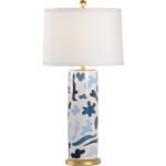 Ceramic lamp with hand painted blue designs. Designs and colors may vary. Designed by Jamie Merida.