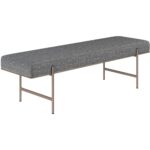 Defined by clean lines, this fabulous bench will effortlessly infuse modern style into any space. Stocked in chacha grey and limestone fabrics, and completed with an antique brass powder coated steel base.