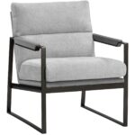 A luxurious combination of mixed materials are found on this stunning lounge chair. Features a san remo winter cloud fabric seatback with an antonio charcoal fabric exterior. An exposed pewter steel frame completes the design.