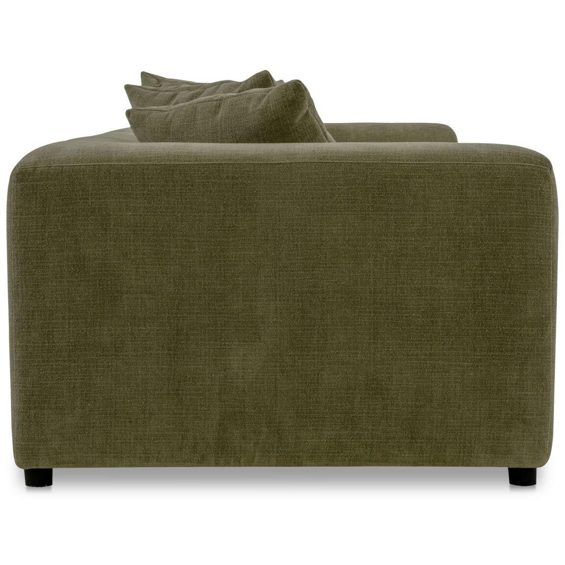 The Davie Sofa’s generous scale and deep seat invite serene relaxation. Tufted seat cushions adorned with feather and fiber toppers create a plush landscape made for lounging. The two-piece sofa in velvety chenille upholstery offers a flexible arrangement as six loose back pillows create personalized comfort.