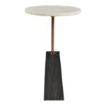 A mix of black and white marble, the Dawn accent table brings together contemporary modern design with minimalism and structure-play. This table is versatile and unique with a moody grey marble base, a brass-finished iron post, and a stunning white marble top —the perfect wow factor for your living space.