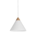 Flick the switch on radiant style with the Daya ceiling light fixture. Designed with clean lines and made from modern materials, this stunning single-light pendant features a sleek white concrete cone-shaped shade that diffuses a soft yet ample glow wherever it hangs. A rubberwood accent adds a natural touch and warms up the overall look. A great choice for for minimalist, Scandinavian or contemporary settings, this fixture mixes all the best in modern style. Suspended from a white fabric-covered wire and white canopy that both enhance the airy look and feel, this light is hardwired for easy installation.