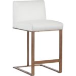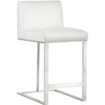 Stunning from all angles, this counter stool features an exposed brushed stainless steel frame with a footrest. A streamlined seat in cantina white, black and magnetite bonded leather completes the look. Perfect for restaurants, bars and residential spaces. Also available in an antique brass steel frame. Suitable for various dining, kitchen and bar spaces of all sizes. Handle with Care: This design has been crafted with bonded leather. Bonded leather is a blend of reconstituted leather and synthetic materials crafted to reflect the natural characteristics of leather; as such, colour variations, markings, wrinkles, grooves and light scratches are acceptable and appreciated characteristics. No two pieces are alike.