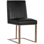 Stunning from all angles, this dining chai features an exposed brushed antique brass steel frame. A streamlined seat in cantina black bonded leather completes the look. Perfect for restaurants, bars and residential spaces. Handle with Care: This design has been crafted with bonded leather. Bonded leather is a blend of reconstituted leather and synthetic materials crafted to reflect the natural characteristics of leather; as such, colour variations, markings, wrinkles, grooves and light scratches are acceptable and appreciated characteristics. No two pieces are alike. Visit our Product Care page for more information on how to ensure the lasting beauty of this piece.