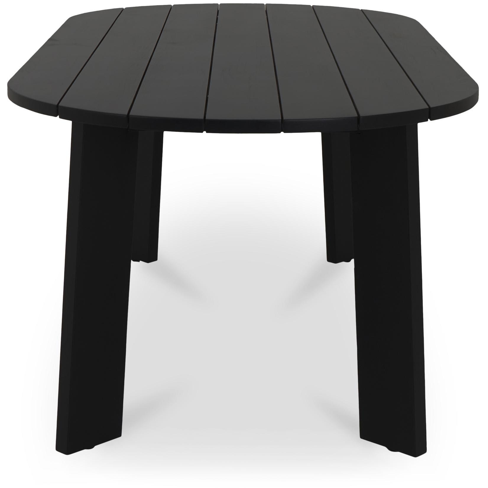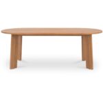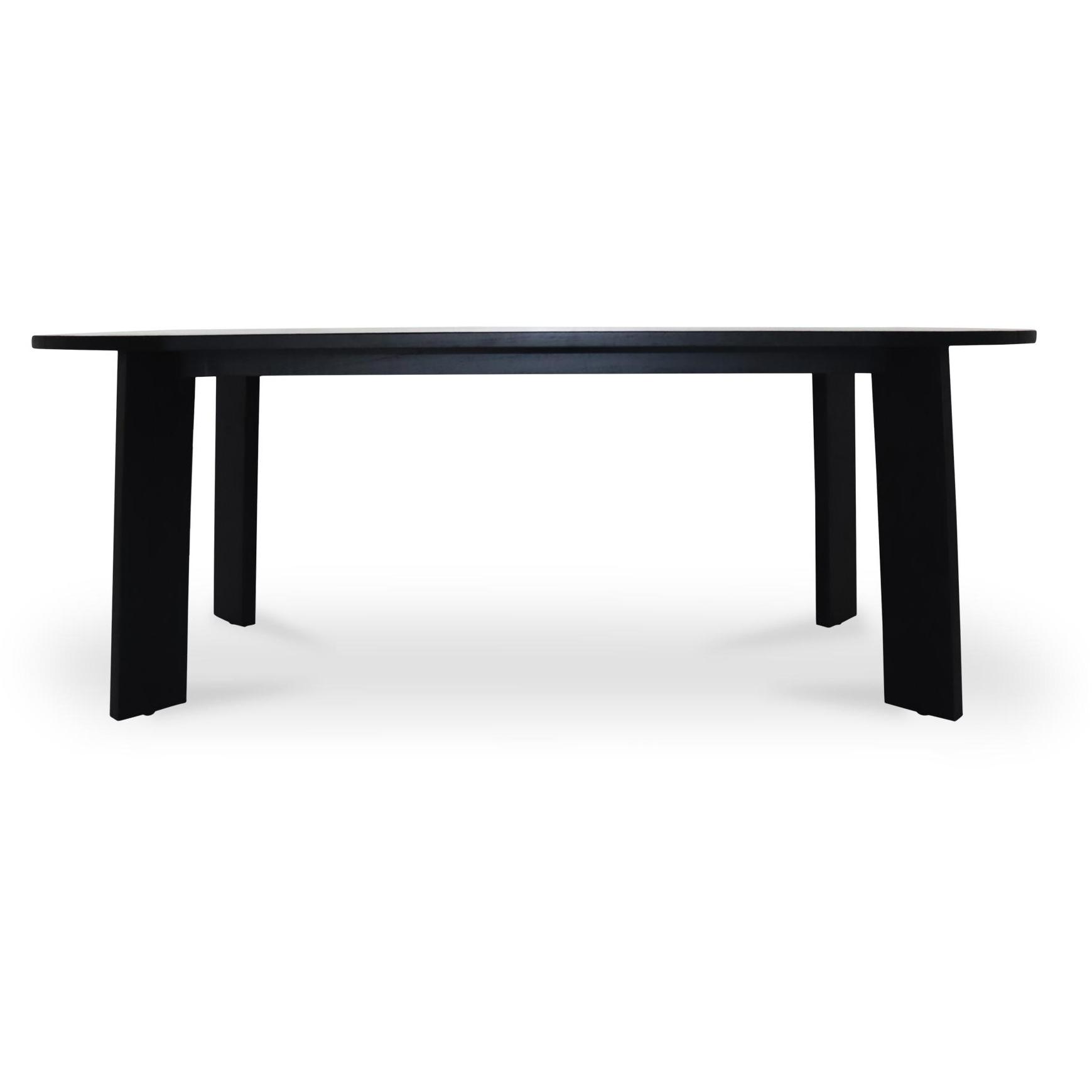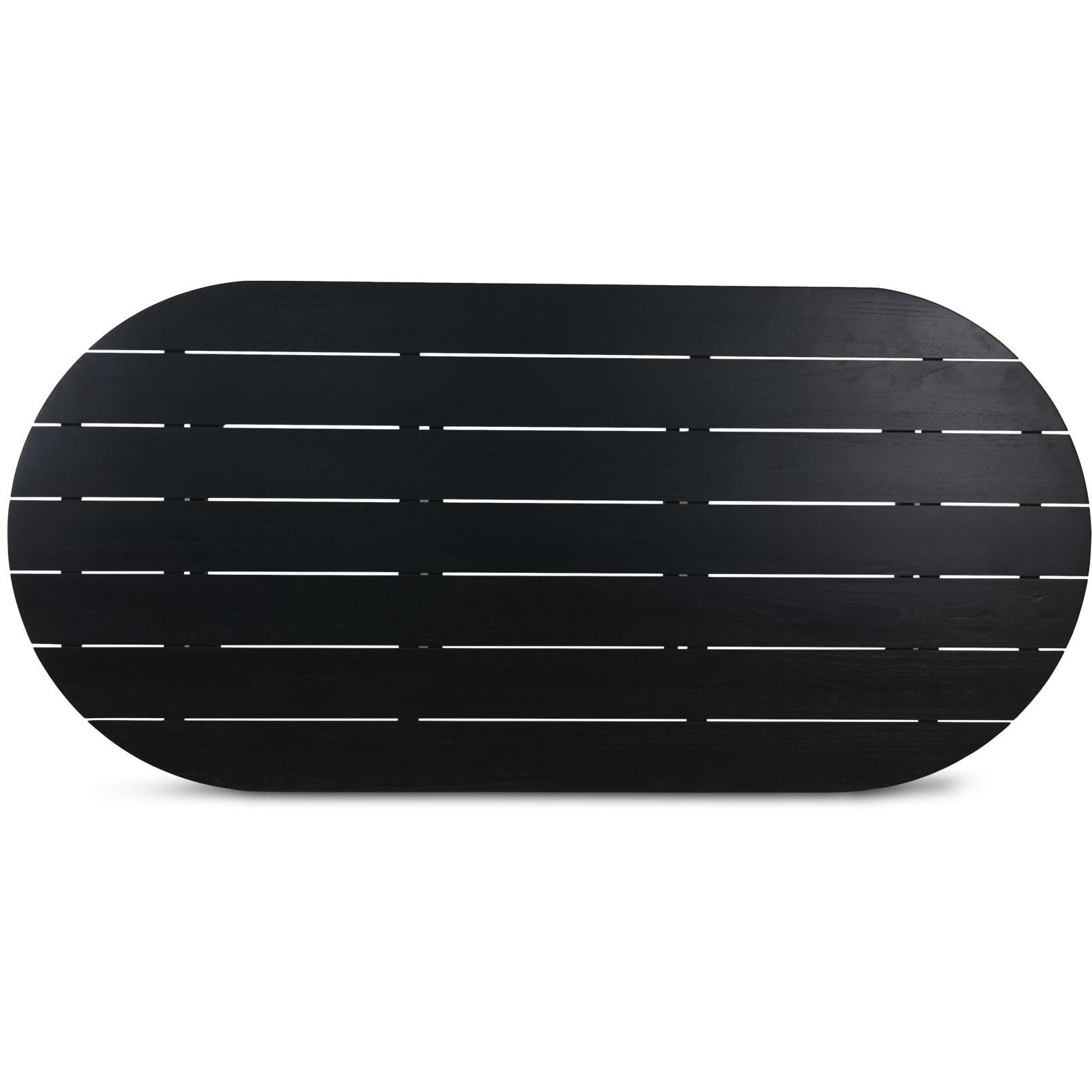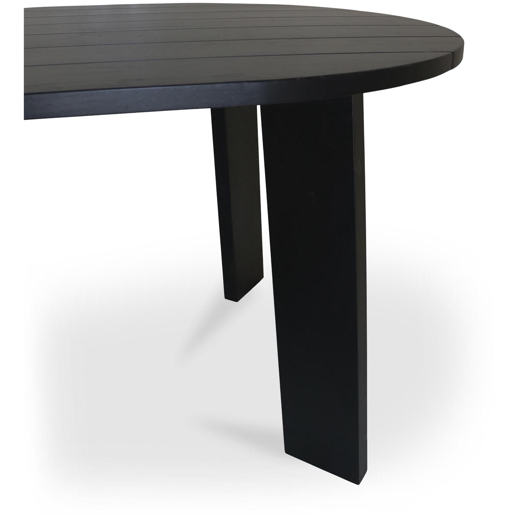 Embodying contemporary sophistication, this solid teak table celebrates natural material. The Delta outdoor dining table’s angular legs provide a striking contrast to the oval, curved top, creating a minimalist yet elegant aesthetic. Over time, the table embraces a unique silver-grey patina as the teak and oils naturally weather. Though the process lends to its character, a teak sealer can be applied to maintain its original allure.