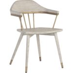 The classic elegance of this dining chair is guaranteed to make a statement in any dining room. The stylish antique brass spindles complement the matching metal caps of the chair legs. Completed with a grey solid oak wood base. As wood is an organic, porous material, these pieces will contain natural variation of texture and may also exhibit fine indentations and cracks. Wood pieces will also display a disparity of colour and grain, and visible knots and burls that add to the character of each piece.