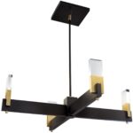 A modern chandelier that is revitalized by beautiful details. Features a black almuminum frame with clear acrylic shades. Accenting brass detailing completes the look. Made in India. With refined craftsmanship, this design was brought to life by skilled local artisans. Due to the nature of handcraftsmanship, unique imperfections such as fissures, markings and variations in colour and shape are welcomed and appreciated characteristics for a truly one-of-a-kind piece.