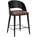 Dezirae Counter Stool – Antique Brass – Charcoal Black Leather