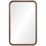 The simple styling of this decorative wall mirror adds an element of industrial décor to classic and contemporary rooms. The natural wood frame incorporates eclectic design details with a rounded pipeline shape and curved corners that soften the rectangular looking glass. A warm walnut brown finish complements the mirror’s humble profile with a neutral color palette that’s lived-in and luxe.