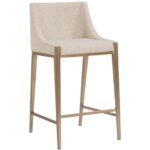 With its clean and modern design, this counter stool is a stunning addition to any dining or kitchen space. Stocked in our textured monument pebble fabric and completed with powder coated stainless steel legs in an antique brass finish. Also available in monument oatmeal fabric.