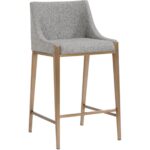 With its clean and modern design, this counter stool is a stunning addition to any dining or kitchen space. Stocked in our textured monument pebble fabric and completed with powder coated stainless steel legs in an antique brass finish. Also available in monument oatmeal fabric.