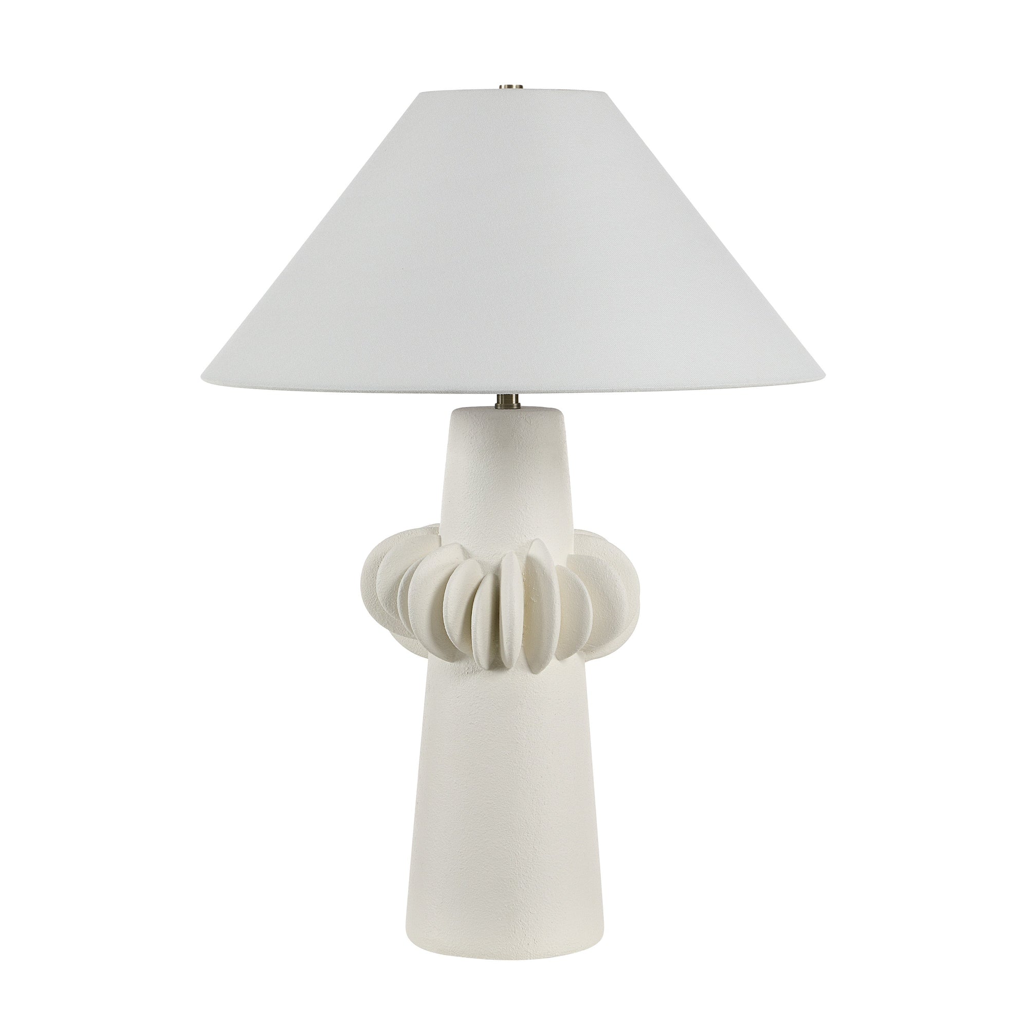 The Disla table lamp commands attention with its graceful silhouette and enduring elegance. Featuring a textured ivory base, a linen drum shade, and rich dark antique brushed brass accents, it casts a gentle, inviting light. Perfect for standalone style or paired up, it adds a touch of refined warmth and timeless beauty to any setting.