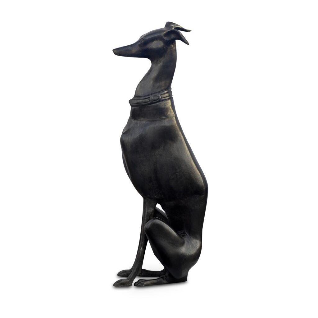 - Metallic and Maximalist: The cast-aluminum sculpture pays homage to the 1920s Art Deco era with its bold, metallic presence —a tall, striking greyhound figure.
