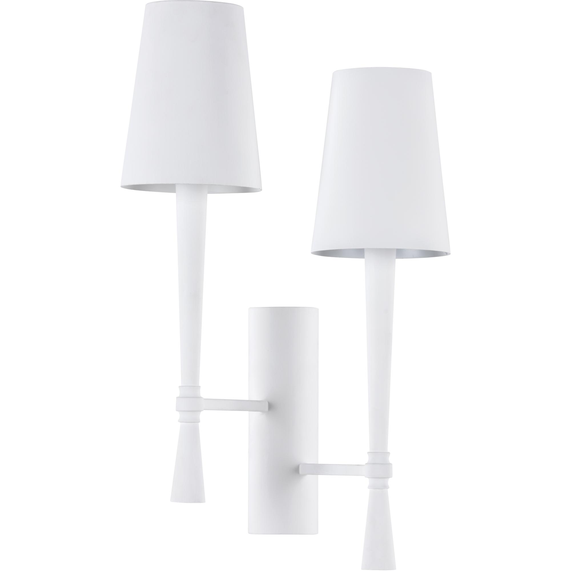 Inspired by plaster of Paris and the changing literary era of Alexandre Dumas, the Dumas Plaster Sconce will add a layer of style to your lighting design. This two-light wall sconce is crafted of sturdy steel with a matte white plaster finish, bringing a refined rustic feel to your space. Tapered metal shades diffuse light, providing a soft glow.