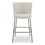 The Early bar stool is an elegant fusion of minimalist design and comfort that features a slim metal frame in a blackened bronze finish. Its seat and comfortably curved back are upholstered in durable, easy-to-maintain Performance fabric. It complements any dining setting, especially alongside wooden tables, presenting a clean, cohesive look that invites sophisticated ease.