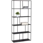 Add style and warmth to living and office spaces with this well-designed iron bookcase in a brushed antique brass finish. Can be placed in pairs or multiples for added impact and functionality. Also available in a smaller size. Anti-tipping kit included.