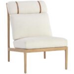 Find a moment to relax in this handsome armless lounge chair. The design combines eye catching elements like altro cappuccino boucle fabric, leather straps and a slatted seatback crafted with solid brown walnut wood for a contemporary look. Altro cappuccino features a warm grey undertone.