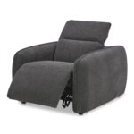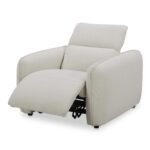 Designed with rounded edges and a plush form, the Eli Power Recliner chair secures a sumptuous embrace with its inviting seat. Soft-to-the touch fabric combines with the feather and fiber seat to provide an added layer of plushness. For ultimate in ease and relaxation, this power recliner is equipped with a power motion footrest and headrest that allows for custom seating positions. Plus, the control buttons are discreetly located on the inside arm of the chair.