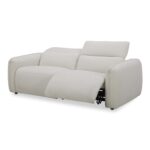 Designed with rounded edges and a plush form, the Eli Power Recliner sofa secures a sumptuous embrace with its inviting seat. Soft-to-the touch fabric combines with the feather and fiber seat to provide an added layer of plushness. For ultimate in ease and relaxation, this power recliner is equipped with a power motion footrest and headrest that allows for custom seating positions. Plus, the control buttons are discreetly located on the inside arm of the sofa.
