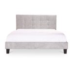 This king size bed is upholstered with tufted light grey fabric, to give your bedroom a sleek and modern look. Classic, warm, and inviting.