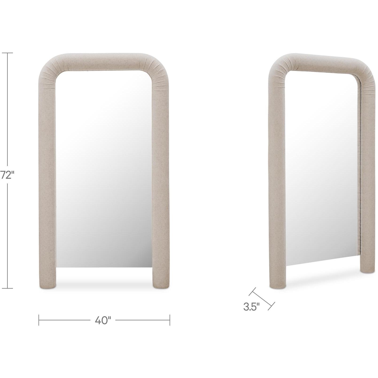 - Large floor mirror with modern, soft corners with ruched detail & soft-touch fabric upholstery