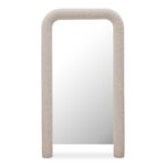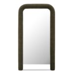 - Large floor mirror with modern, soft corners with ruched detail & soft-touch fabric upholstery