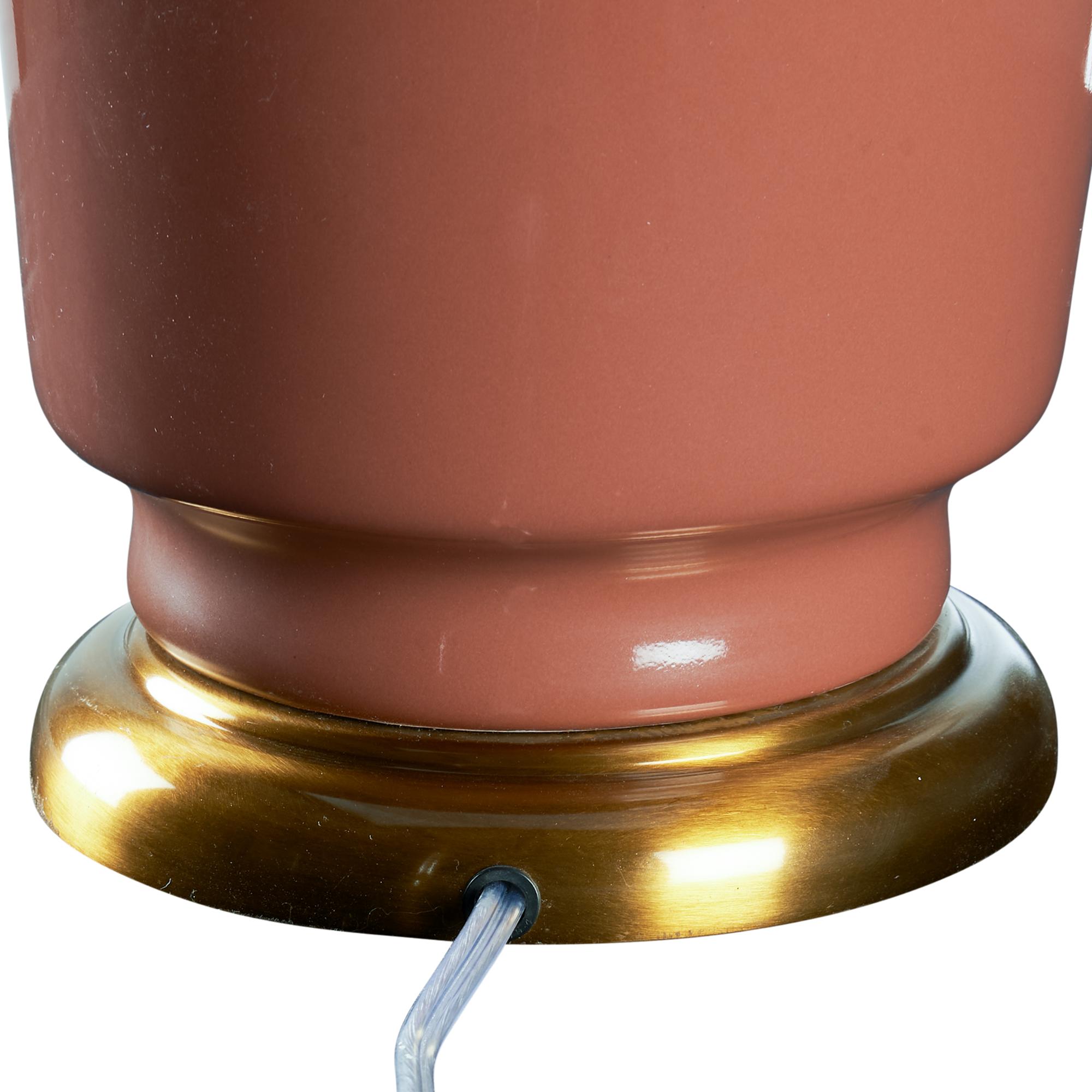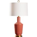 The Emma Lamp exudes timeless elegance with a refined silhouette and subtle vintage charm. A warm antique brass base supports a teracotta glazed vintage-inspired ceramic vase, creating a sophisticated foundation for the classic drum shade. Topped with a geometric gold finial, this lamp brings graceful style and soft ambient light to any interior setting.