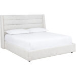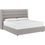 This upholstered bed features horizontal channel tufting for a modern look. Stocked in quarry fabric. No box spring is required and slats are included.
