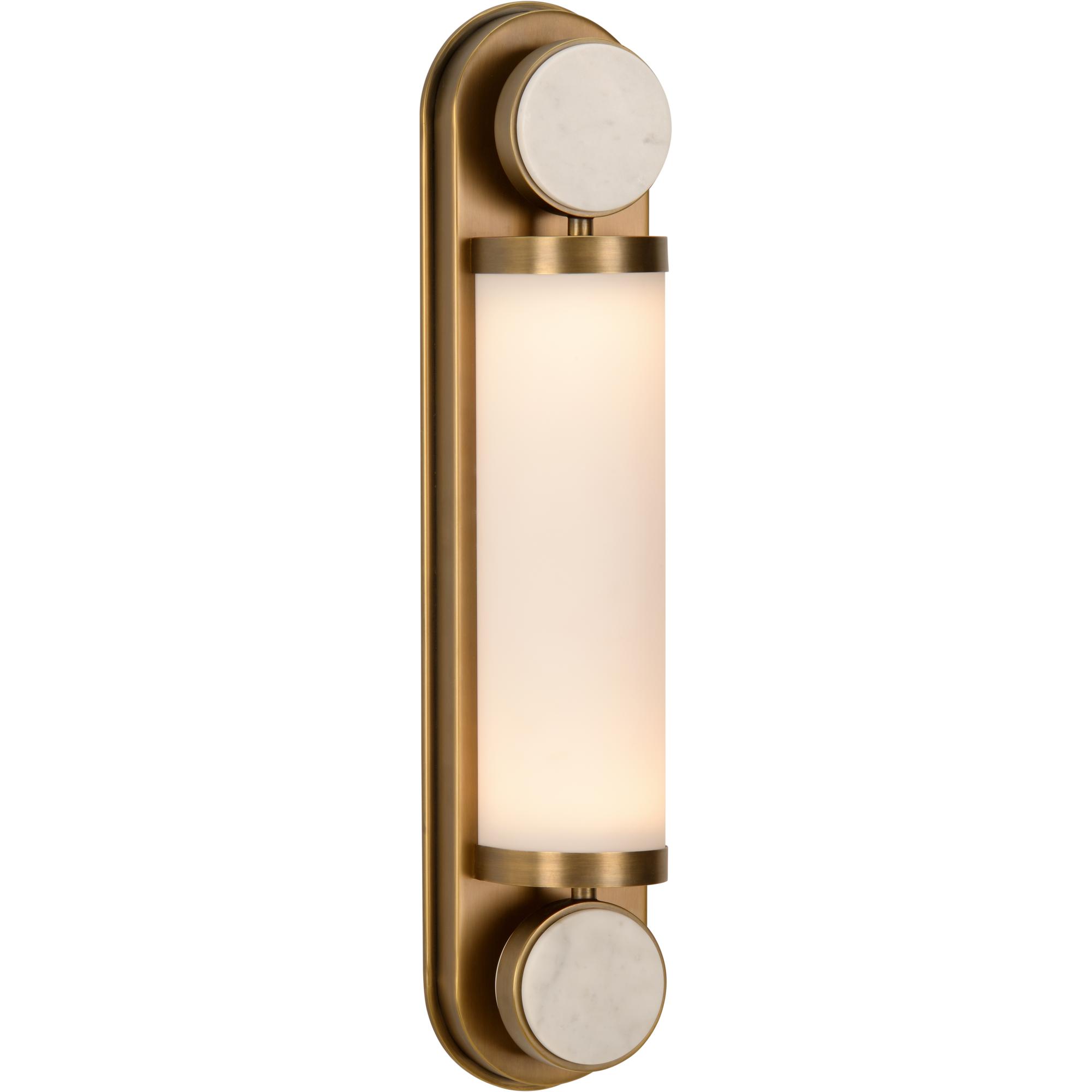 Intended to enhance any space, regardless of aesthetic, era, or application, the Emmons Sconce is the epitome of timeless elegance. A marriage of materials— including metal, glass, and honed Carrera marble— creates a design that looks as beautiful flanking a bathroom vanity as it does lining a hallway. The pair of honed Carrera marble spheres perfectly frame the center column of glass. This piece can be installed vertically or horizontally to great effect. This sconce is damp-rated and ADA Compliant.