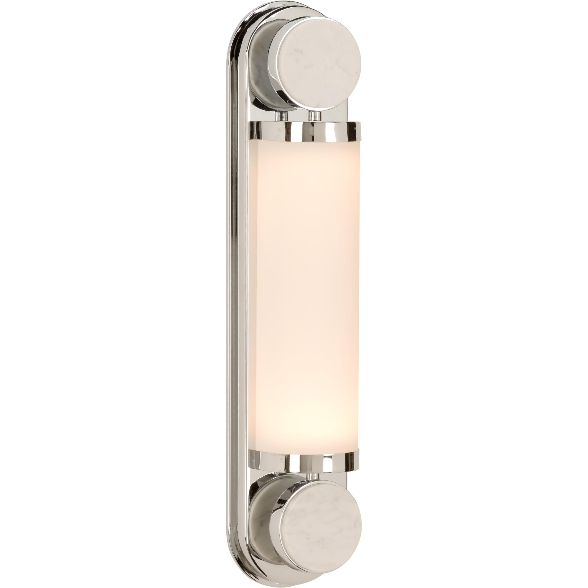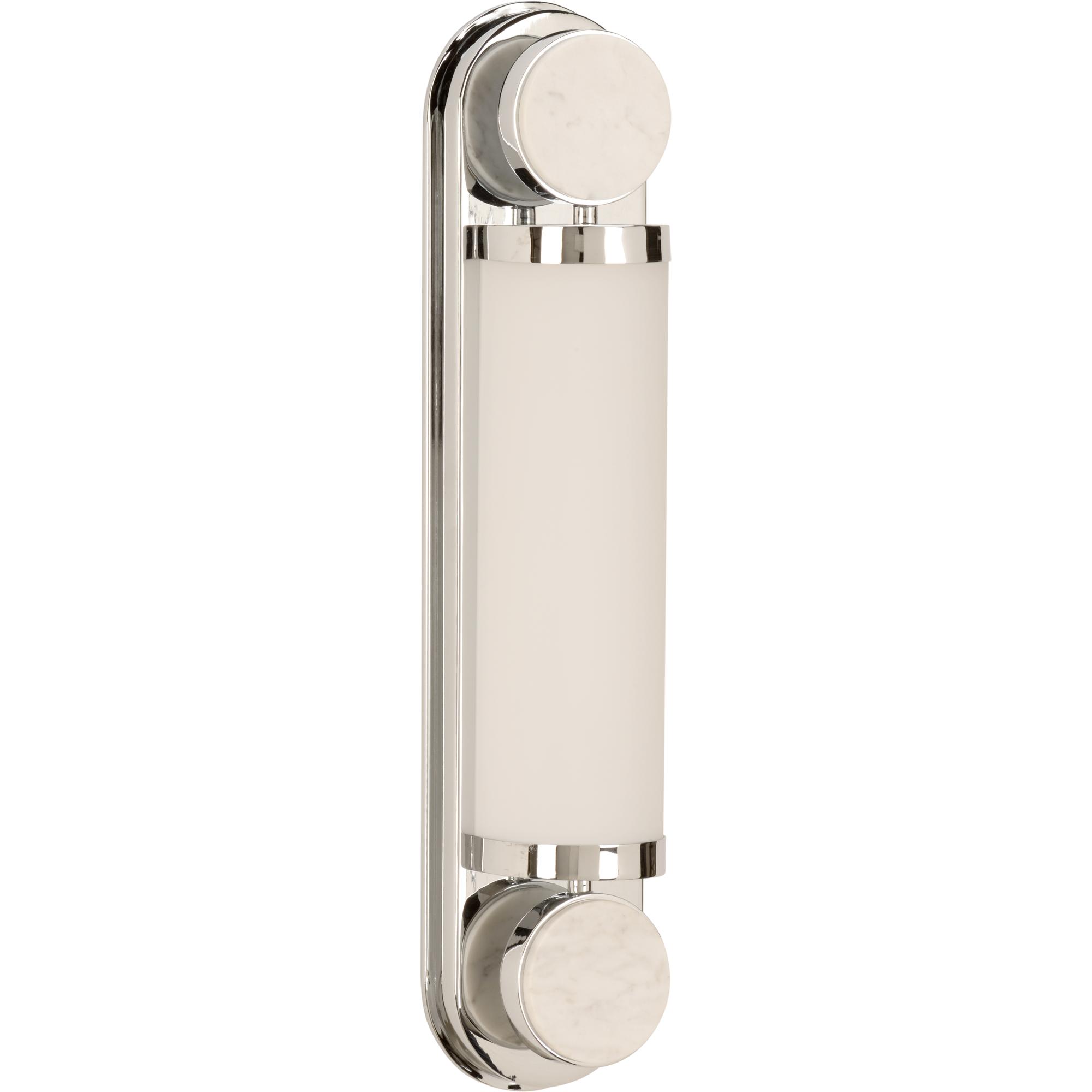 Intended to enhance any space, regardless of aesthetic, era, or application, the Emmons Sconce is the epitome of timeless elegance. A marriage of materials— including metal, glass, and honed Carrera marble— creates a design that looks as beautiful flanking a bathroom vanity as it does lining a hallway. The pair of honed Carrera marble spheres perfectly frame the center column of glass. This piece can be installed vertically or horizontally to great effect. This sconce is damp-rated and ADA Compliant.