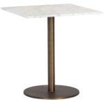 An Art Deco inspired 24″ square bistro table, featuring a solid Carrara marble top with an antique gold steel base. Perfect for restaurants and smaller dining spaces. Also available with a 30″ square and 35″ round top. As marble is a natural material, unique veining, pitting, fissures, micro-cracks and colour variations are all characteristics that add to the uniqueness and beauty of each piece.