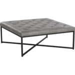 This large square ottoman exudes elegant and transitional flair. Features button tufting with an exposed x-base frame. Stocked in vintage black, camel, vanilla and peacock leather with an antique brass frame. Can be used as a coffee table or as extra seating in residential and commercial spaces. Handle with Care: This design has been crafted with top grain leather. Leather is a natural material; as such, colour variations, markings, wrinkles, grooves and light scratches are acceptable and appreciated characteristics. No two pieces are alike.