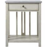 Artfully combining textures and tones, the Escape Bedside Table with Stone Top features one storage drawer, an open-air display shelf, and relaxed linear detailing.